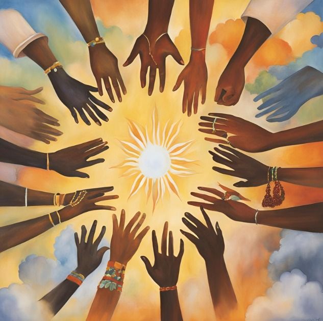 Wir stehen unter demselben Himmel und schauen auf die Sonne, die Licht spendet.