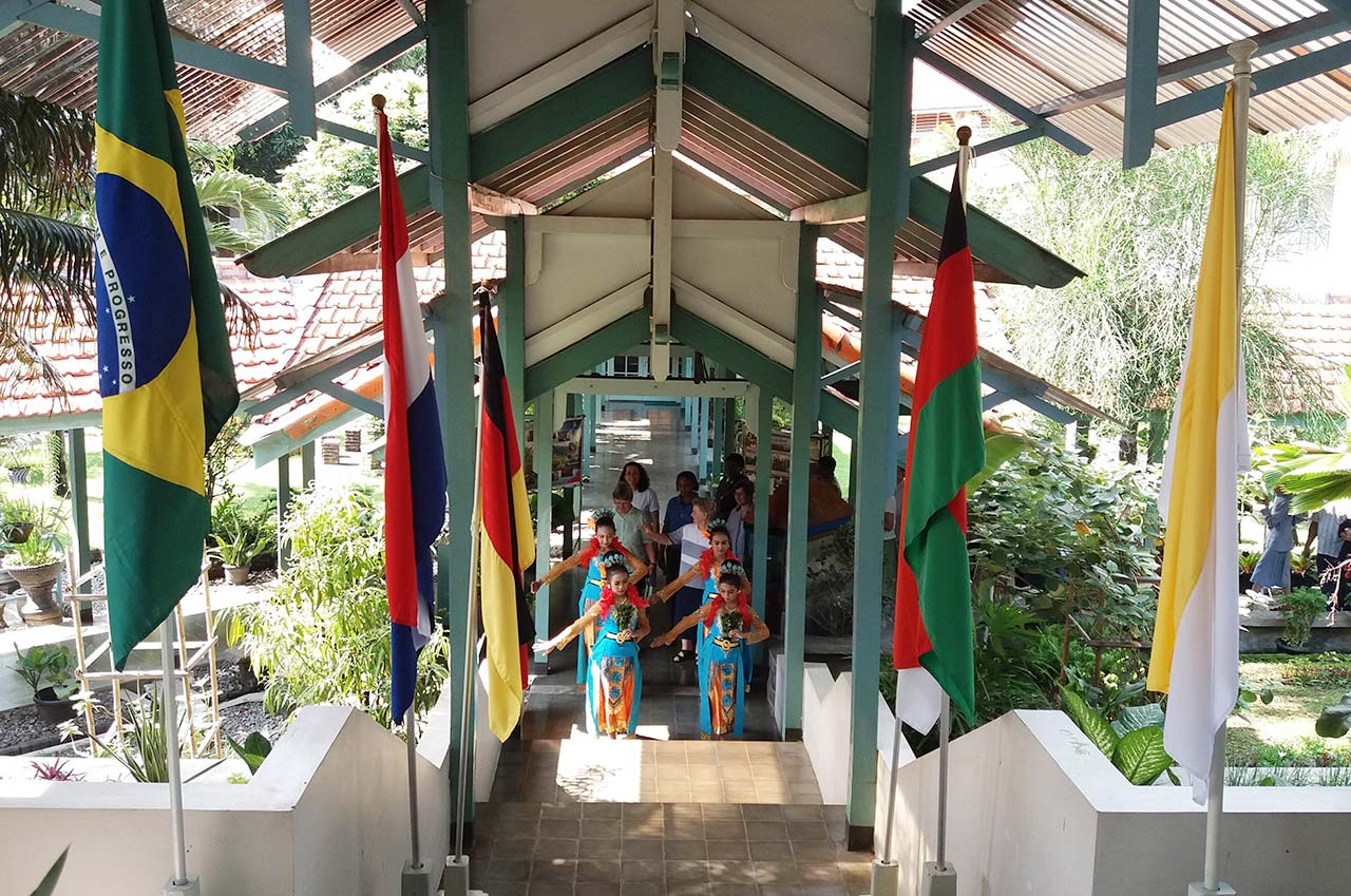 Am Morgen des 09. Januar 2018 begann in Semarang das Ordensratstreffen mit einem herzlichen Empfang durch die Schwestern der indonesischen Provinz „Maria Meeresstern“ und mit einem typischen indonesischen Tanz .